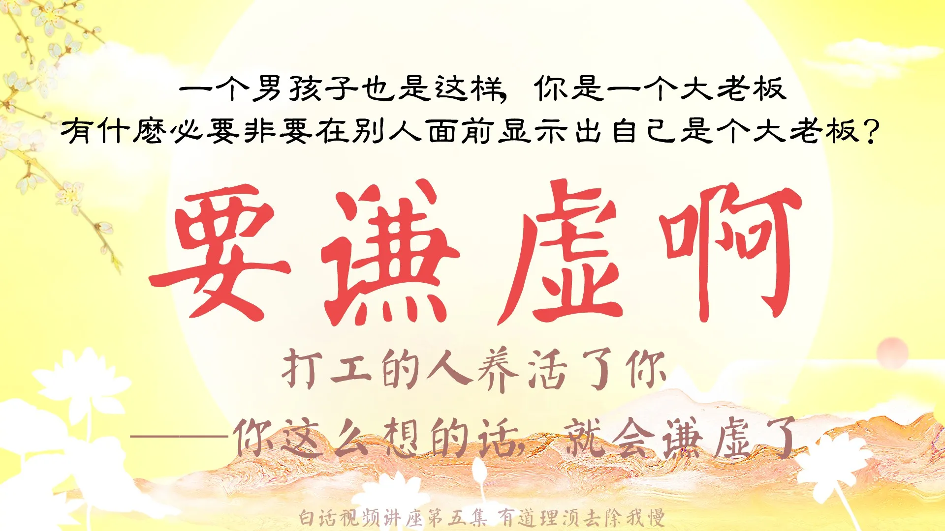 一个男孩子也是这样,你是一个大老板,有什么必要非要在别人面前显示出自己是个大老板?要谦虚啊。打工的人养活了你——你这么想的话,就会谦虚了。