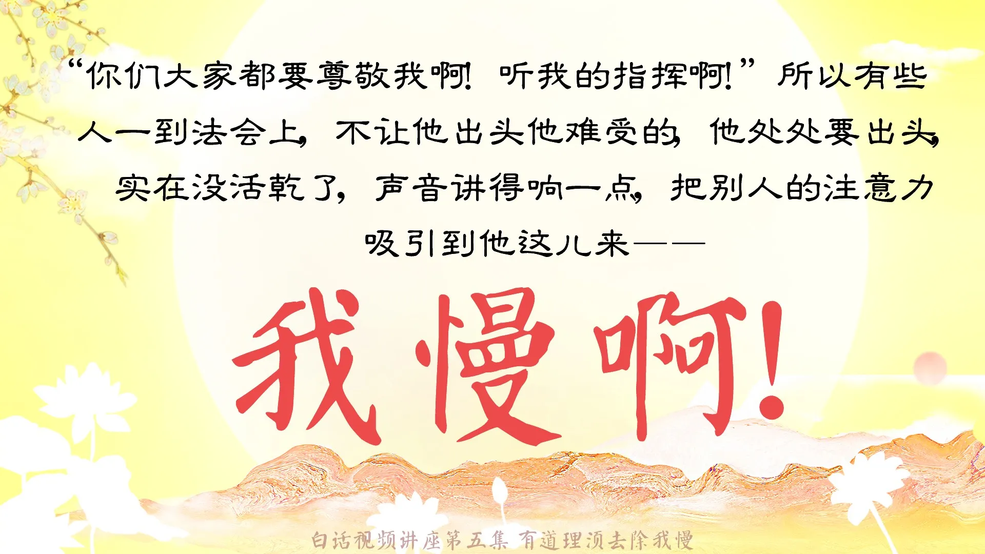“你们大家都要尊敬我啊!听我的指挥啊!”所以有些人一到法会上,不让他出头他难受的,他处处要出头,实在没活干了,声音讲得响一点,把别人的注意力吸引到他这儿来——我慢啊!