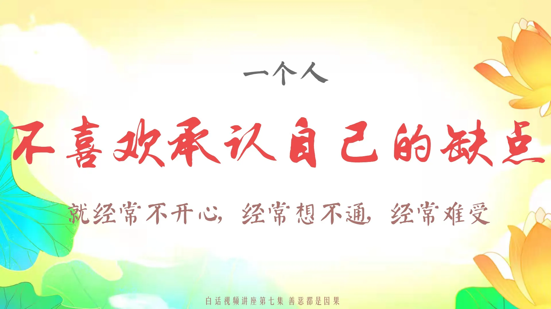 一个人不喜欢承认自己的缺点,就经常不开心,经常想不通,经常难受。