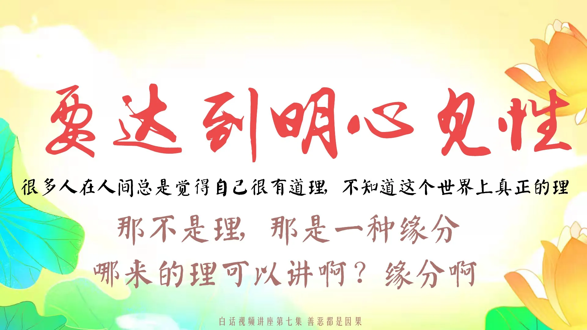 要达到明心见性。很多人在人间总是觉得自己很有道理,不知道这个世界上真正的理,那不是理,那是一种缘分,哪来的理可以讲啊?缘分啊。