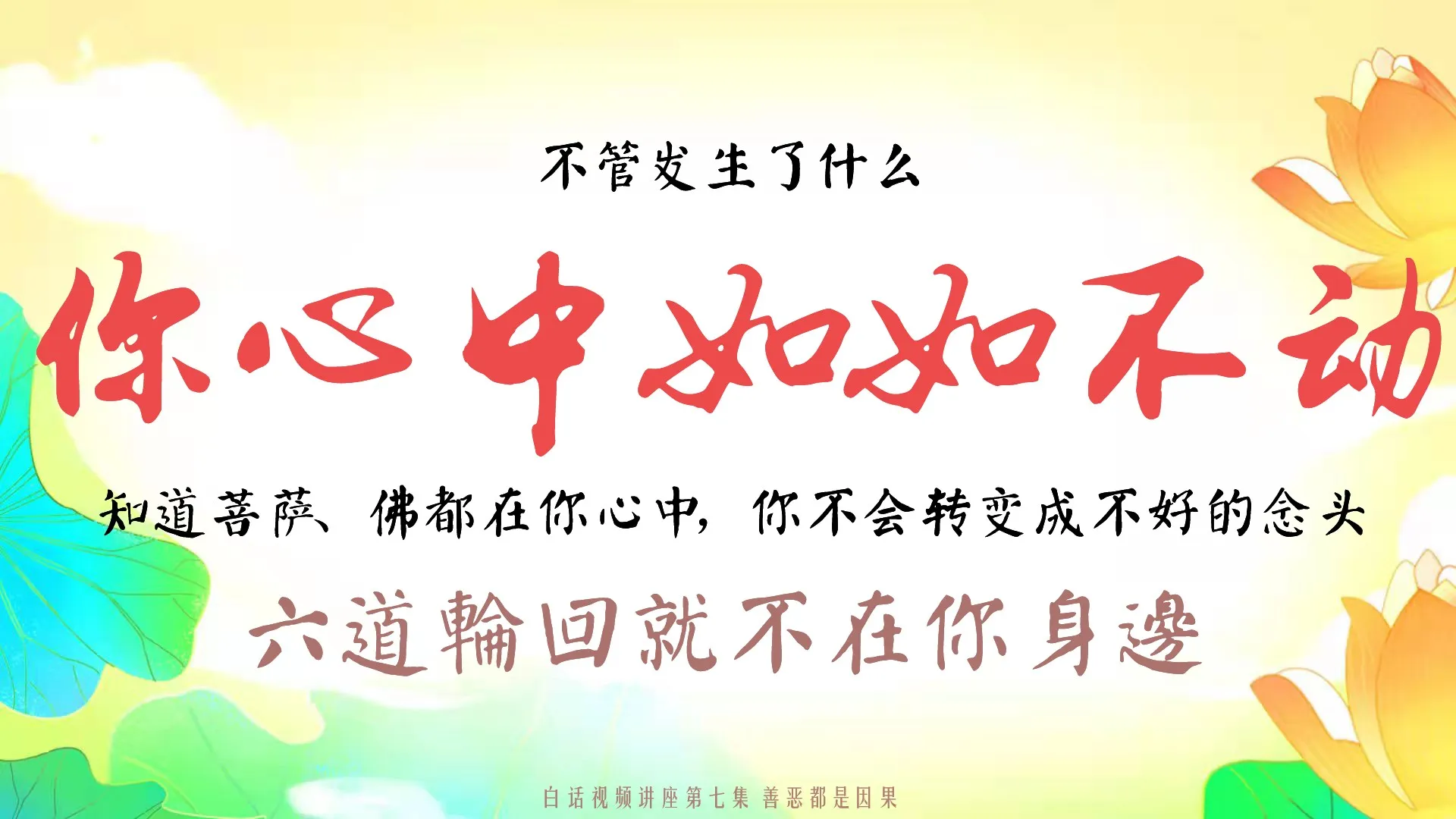 不管发生了什么,你心中如如不动,知道菩萨、佛都在你心中,你不会转变成不好的念头,六道轮回就不在你身边。