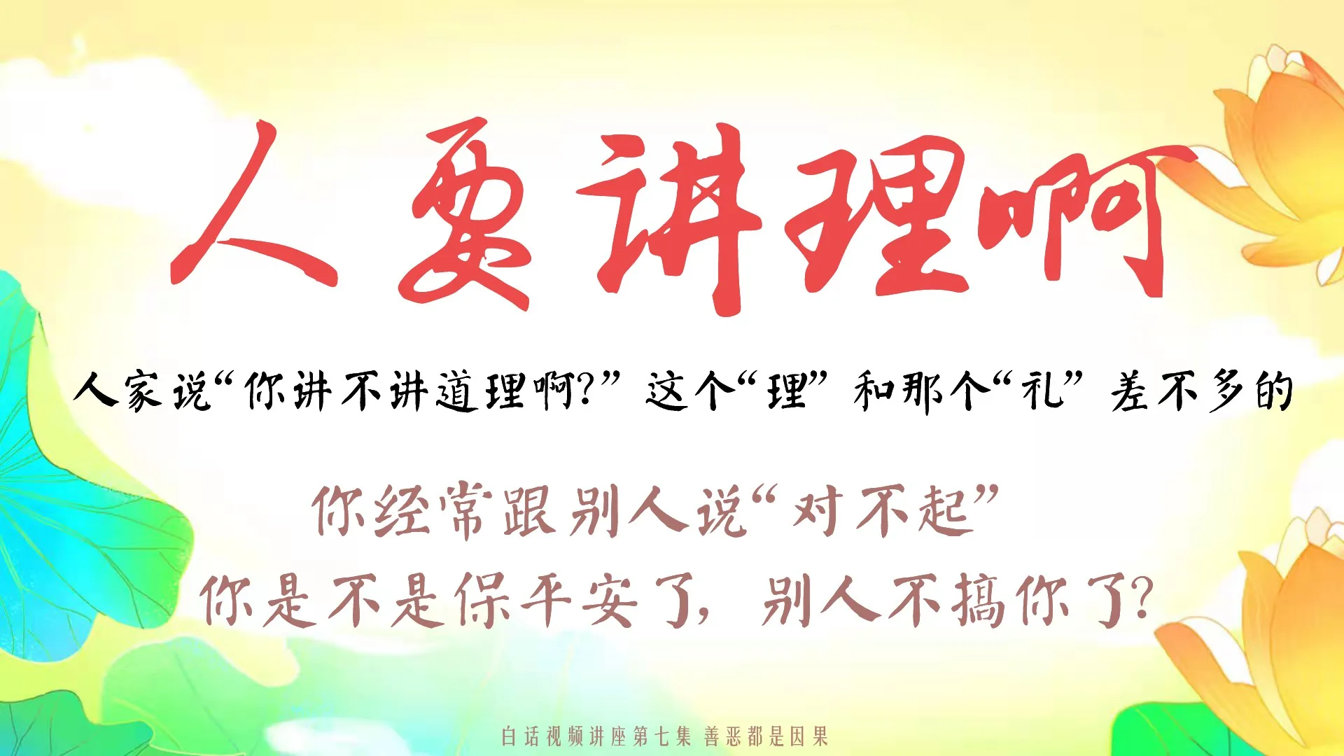 人要讲理啊。人家说“你讲不讲道理啊?”这个“理”和那个“礼”差不多的。你经常跟别人说“对不起”,你是不是保平安了,别人不搞你了?