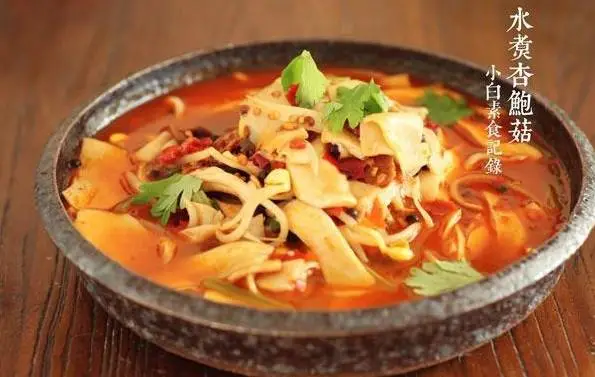 3、锅烧热下油,入生姜、花椒、干辣椒小火煸香,接着下入瓣酱炒香,然后倒入估计能没过菜2/3的水,烧开,下糖,下豆芽煮三四分钟,然后下入芹菜段和杏鲍菇片搅拌,煮个一二分钟~杏鲍菇片变软(杏鲍菇很容易熟)即可关火