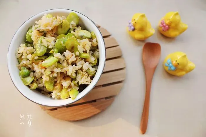 蚕豆50g,米饭一碗,胡萝卜一小截