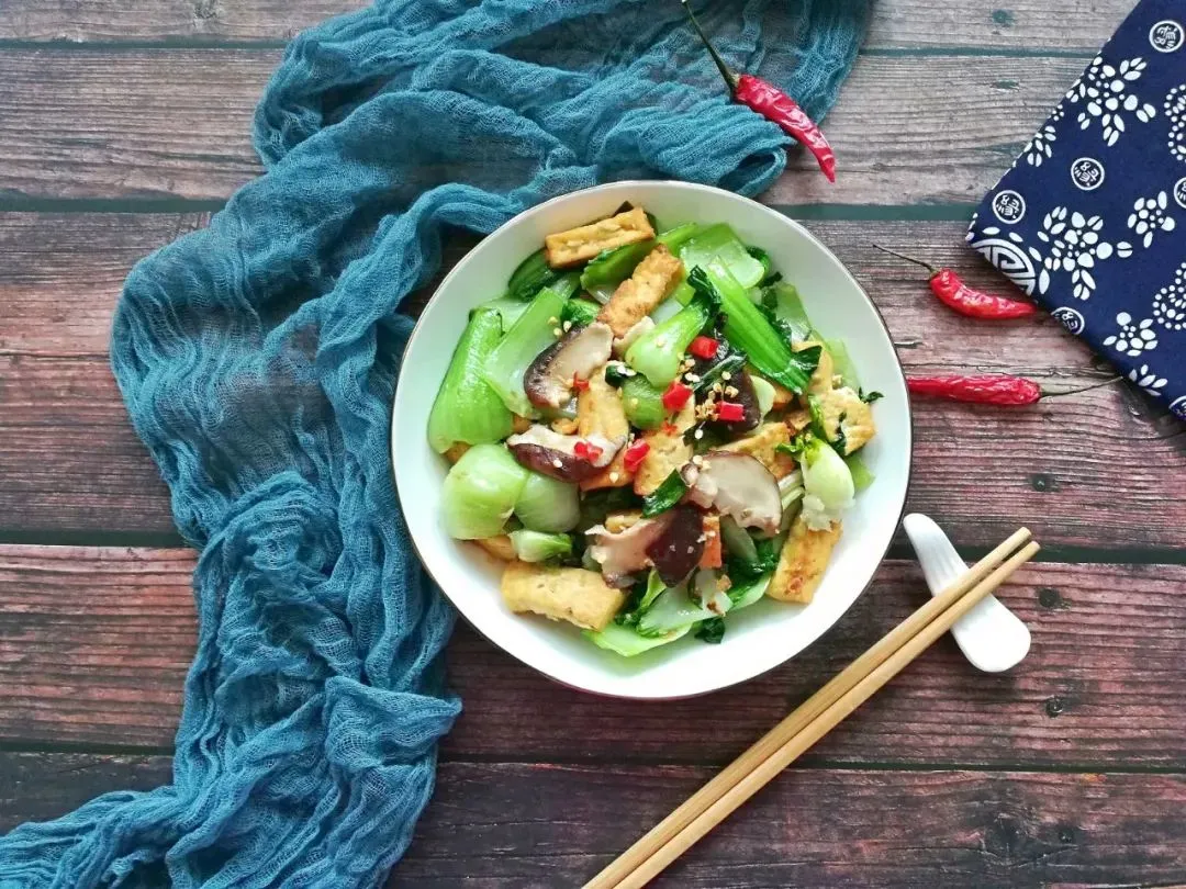 今日美食:香菇油菜炒豆腐
