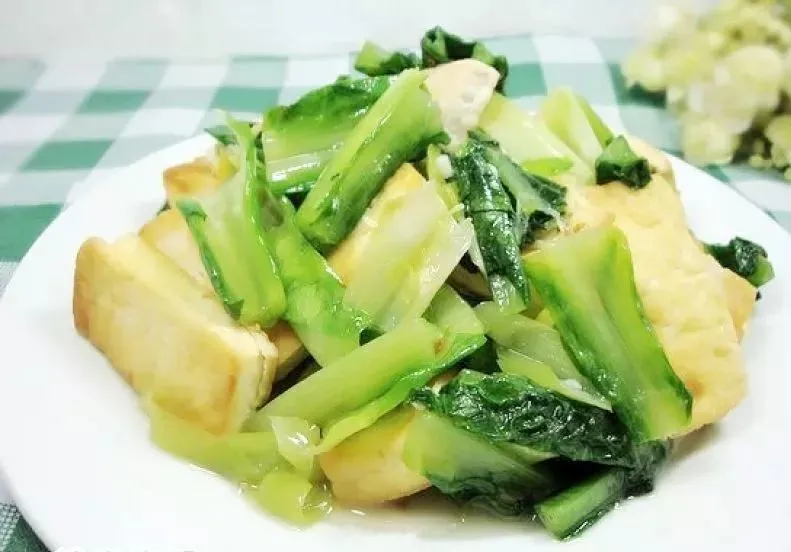 豆腐,油麦菜,植物油,姜末,盐,松茸鲜蔬粉