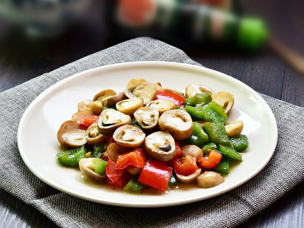 3. 倒入青、红椒炒,加入生抽,适量的水和盐煮开;