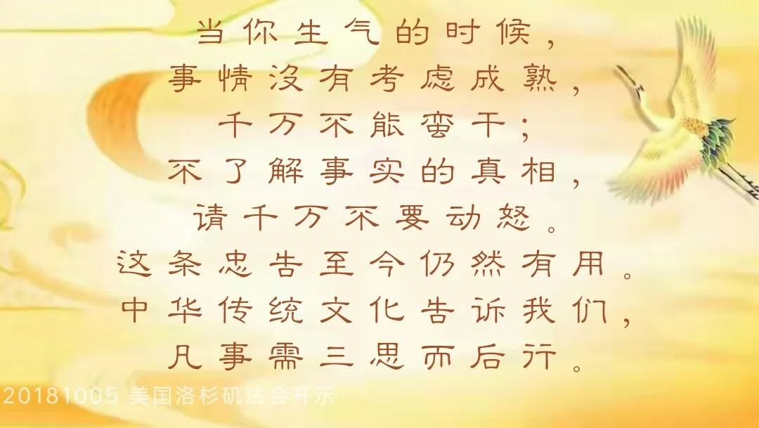 当你生气的时候,事情没有考虑成熟,千万不能蛮干;不了解事实的真相,请千万不要动怒。这条忠告至今仍然有用。中华传统文化告诉我们,凡事需三思而后行。